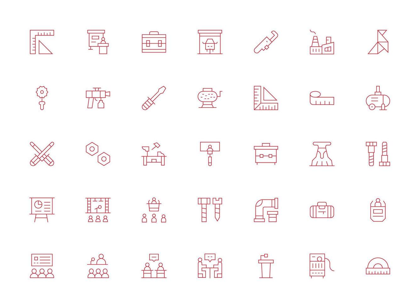 Light Line Style Workshop Icons with 35 Vectors Web and App Icon Pack Collection Free Vector