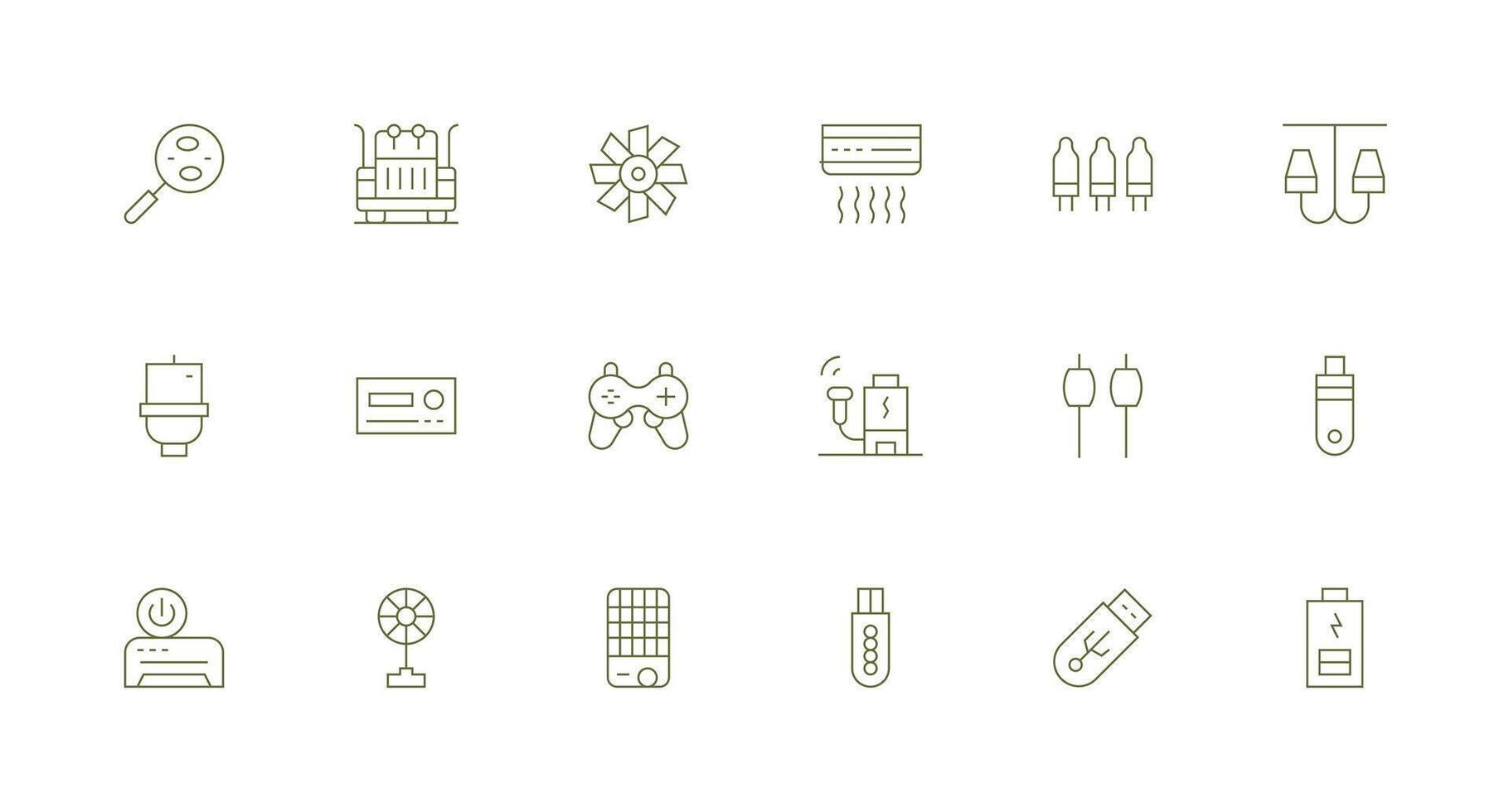 Electronics Design Icons featuring 18 in Minimal Line Style Detailed Icon Collection for Design Systems Free Vector