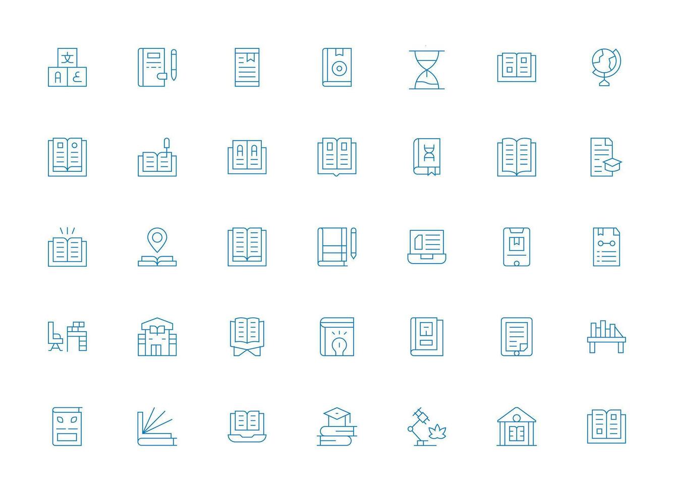 Study Icon Set with 35 Light Line Graphics Responsive Icon Set for Flexible Layouts Free Vector