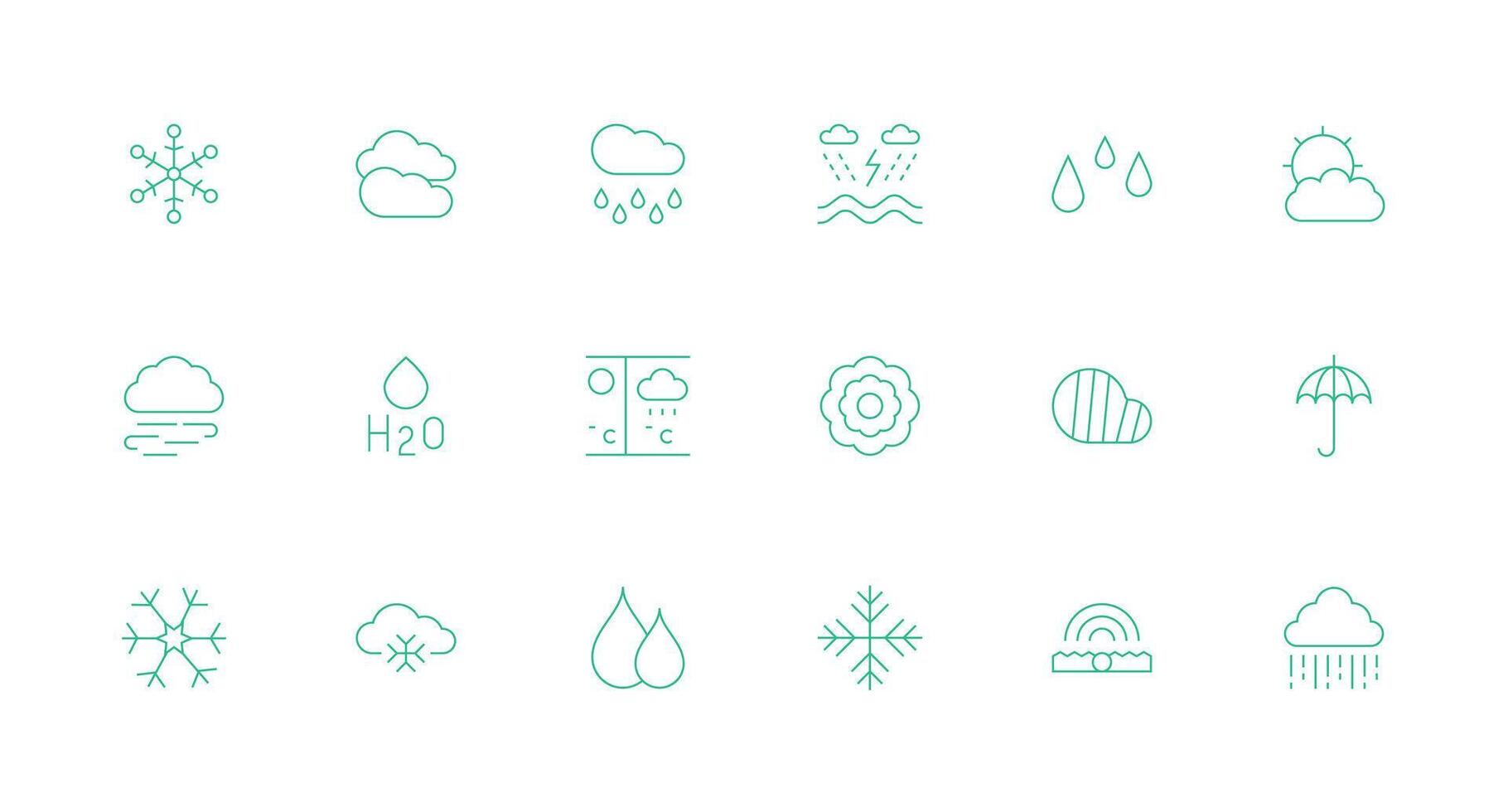 18 Precipitation Icons in Minimal Line Aesthetic Flexible Icon System for Web Interfaces Free Vector