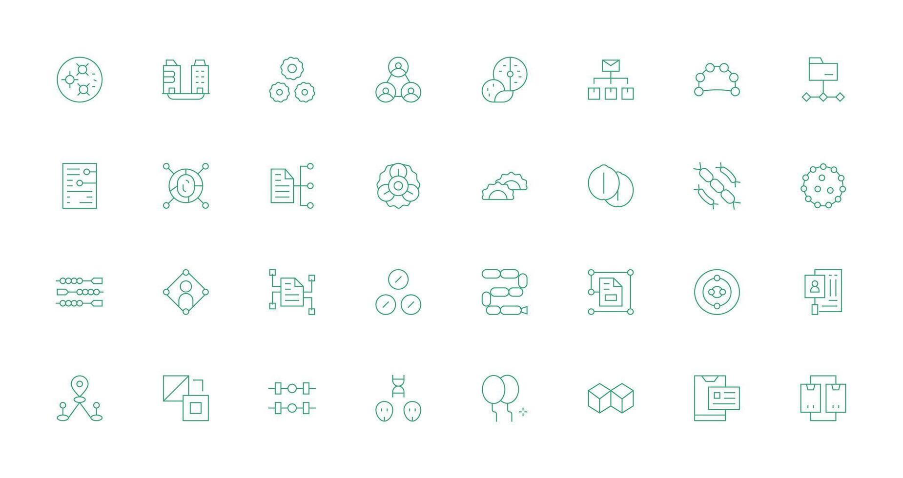 Linked Visual Pack containing 32 Thin Line Icons Multi-Style Icons for Creative Projects Free Vector