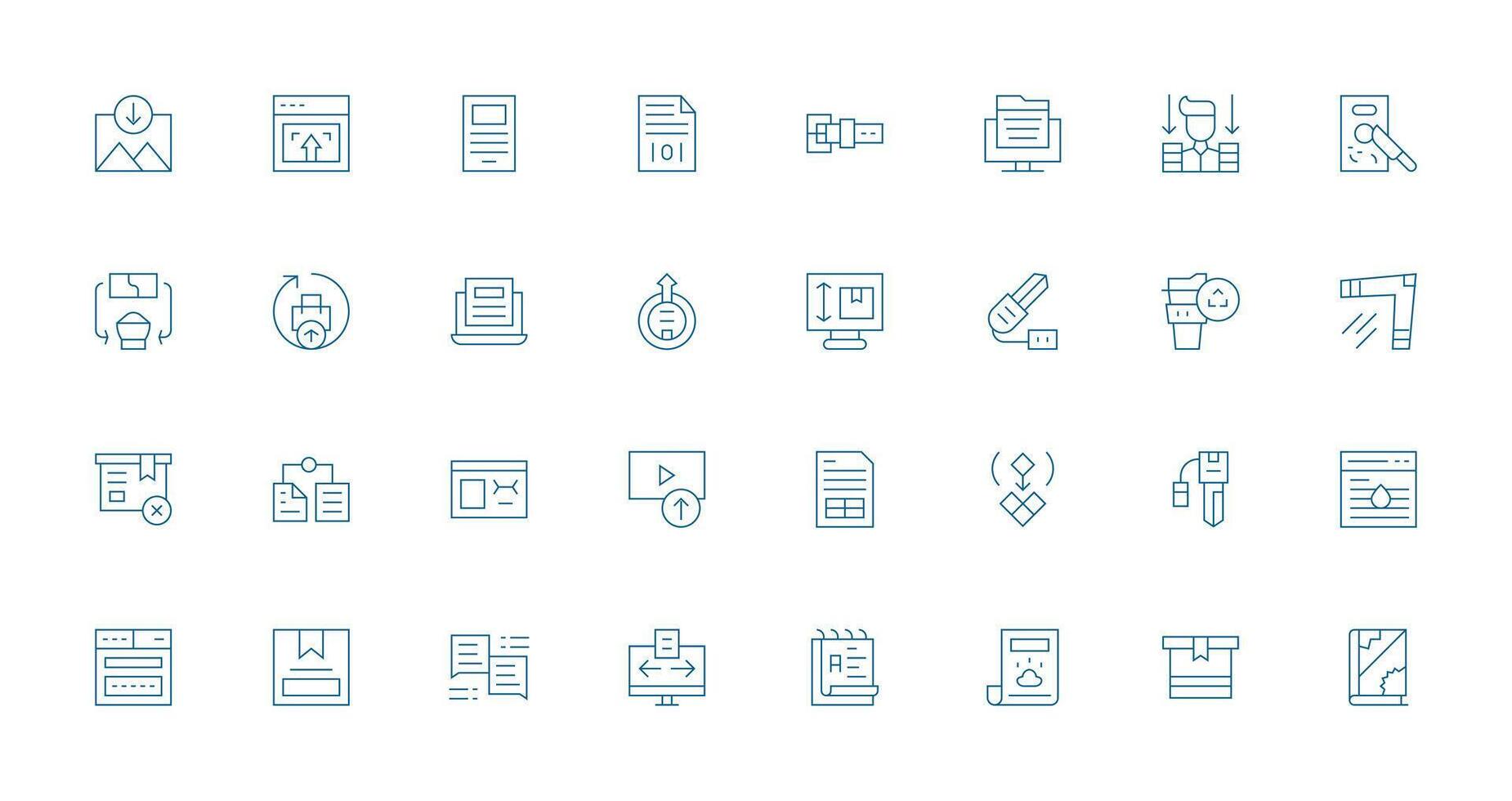Digital File Icon Set with 32 Thin Line Graphics Essential Icon Set for Teams Free Vector