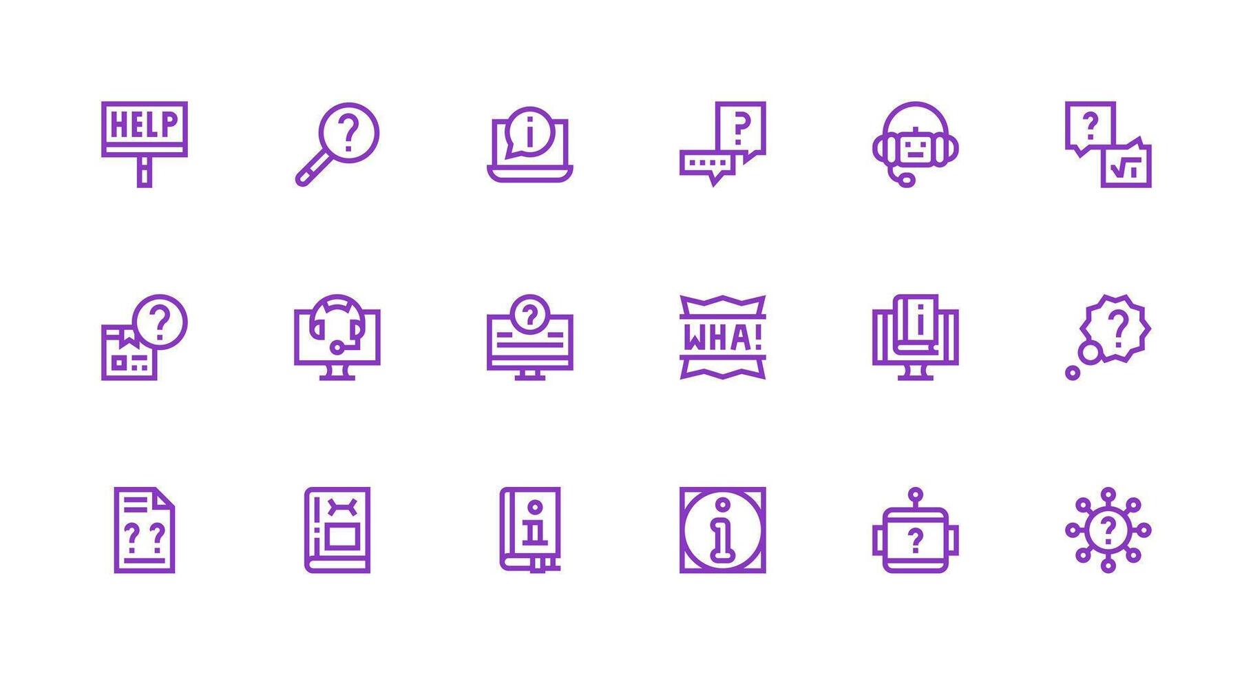 18 Faq Icons in Strong Stroke Line Aesthetic Quick Access Icons for UI Development vector