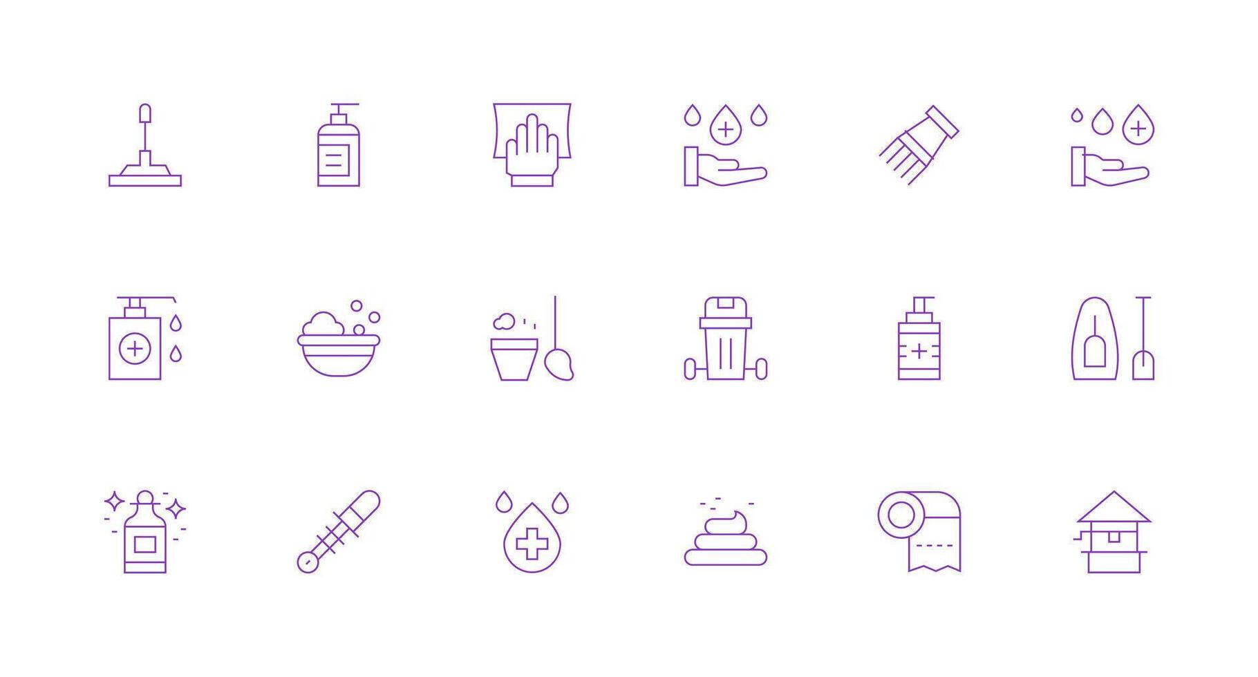 18 Icons for Sanitation in Minimal Line Format Multi-Style Icons for Creative Projects Free Vector
