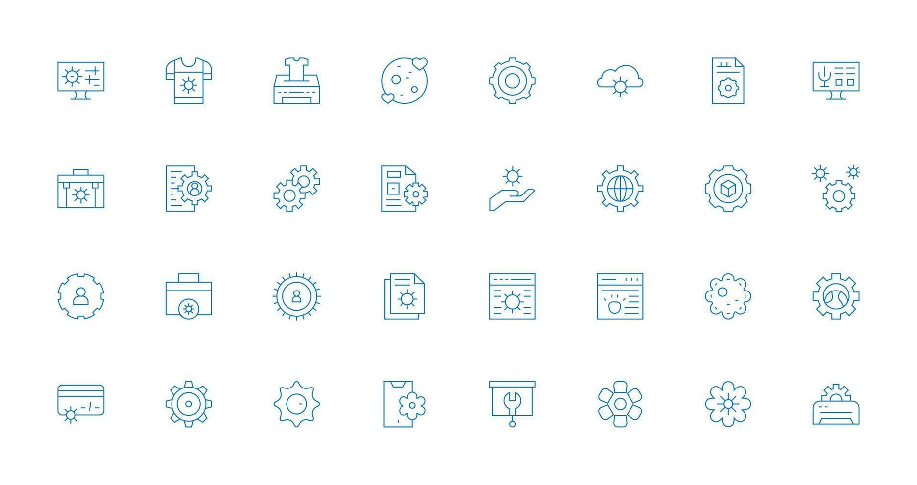 Customization including 32 Thin Line Illustrations Essential Icons for Rapid UI Building vector
