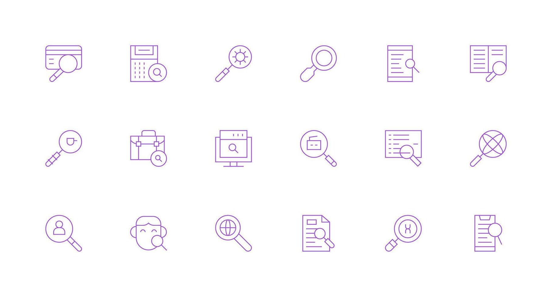 Lookup Visual Pack containing 18 Minimal Line Icons Fully Editable Icon Set for Web Free Vector