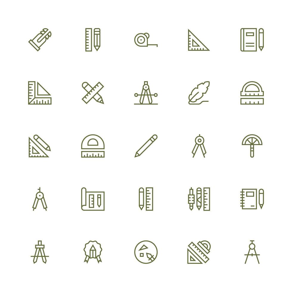 Drafting Icon Set with 25 Medium Stroke Outline Graphics Complete Icon Set for Mobile Apps Free Vector