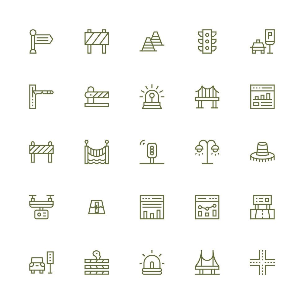 Traffic Icon Set with 25 Medium Stroke Outline Graphics Quick Access Icons for UI Development Free Vector