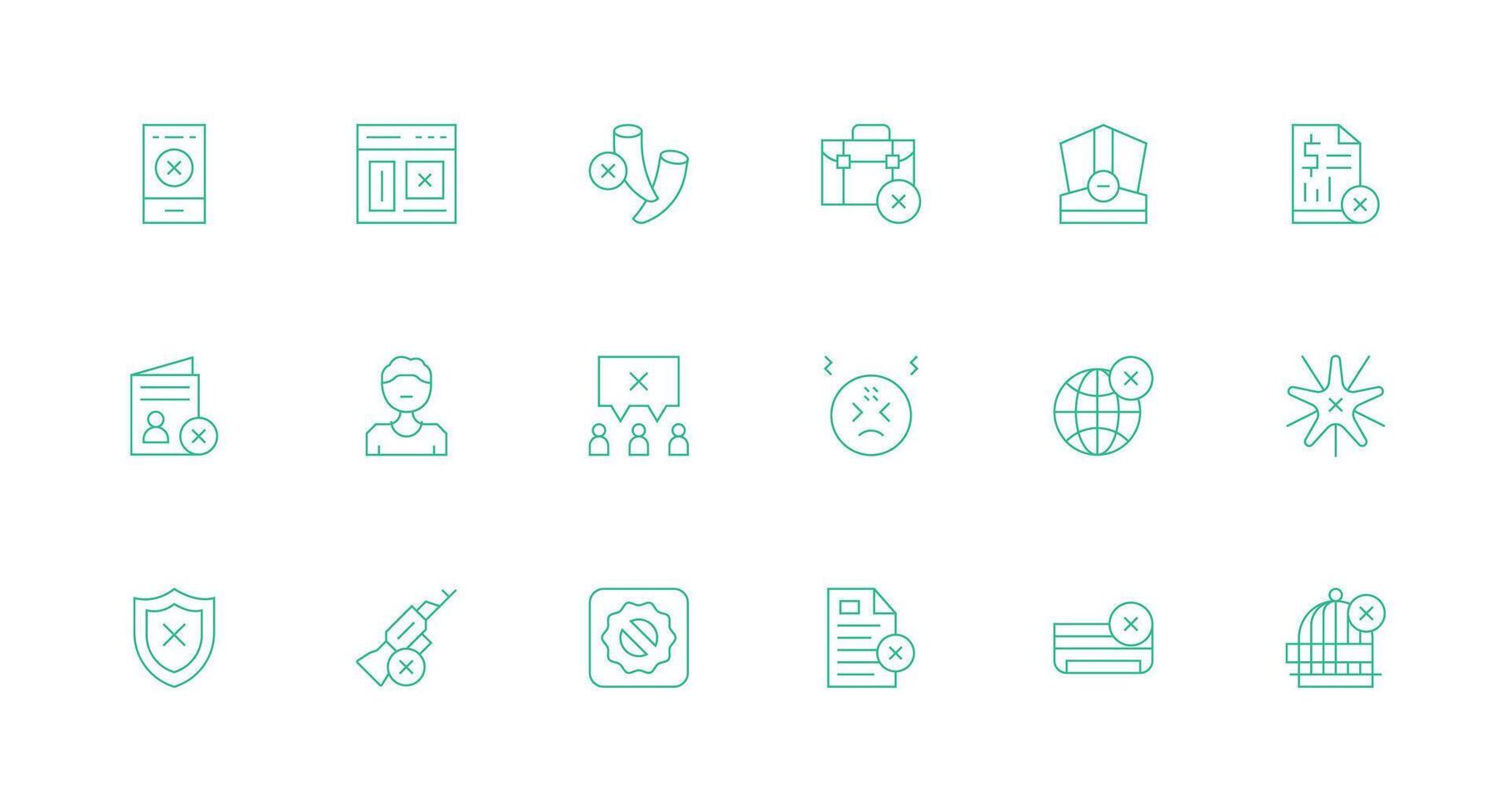 Denied Icon Set with 18 Minimal Line Graphics Reliable Icons for All Interfaces Free Vector