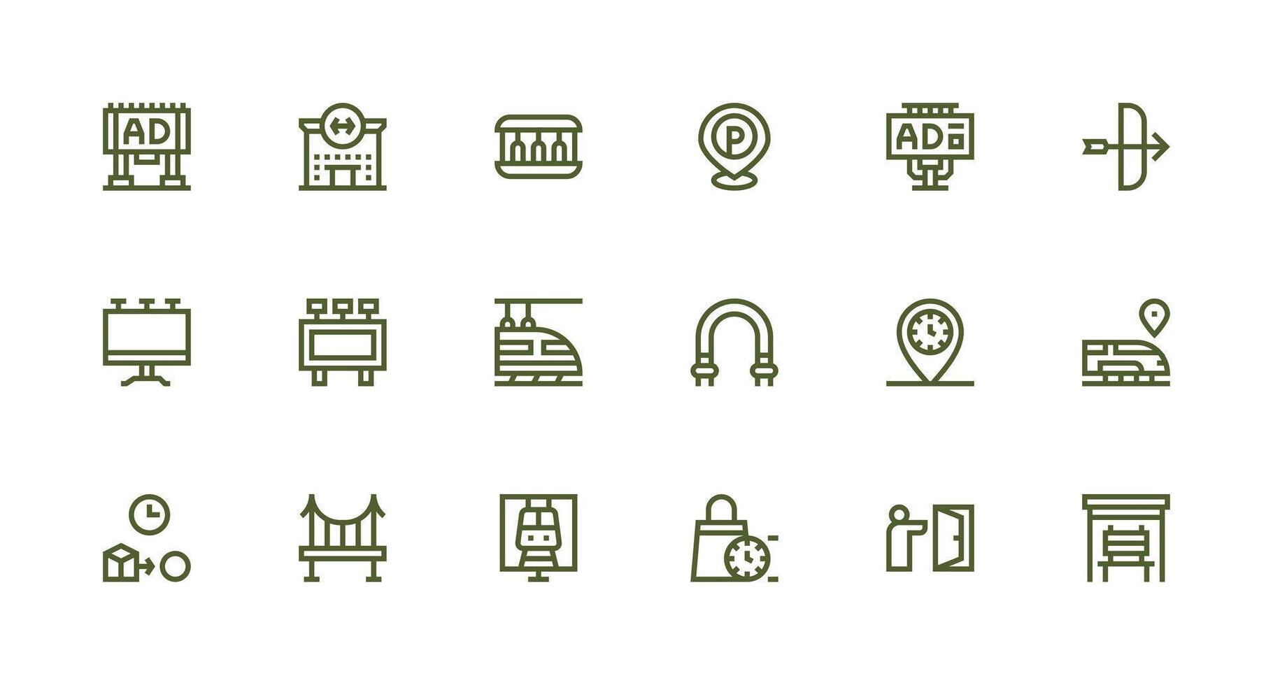 Transit Icon Set with 18 Strong Stroke Line Graphics Customizable Icon Series for Mobile Screens vector