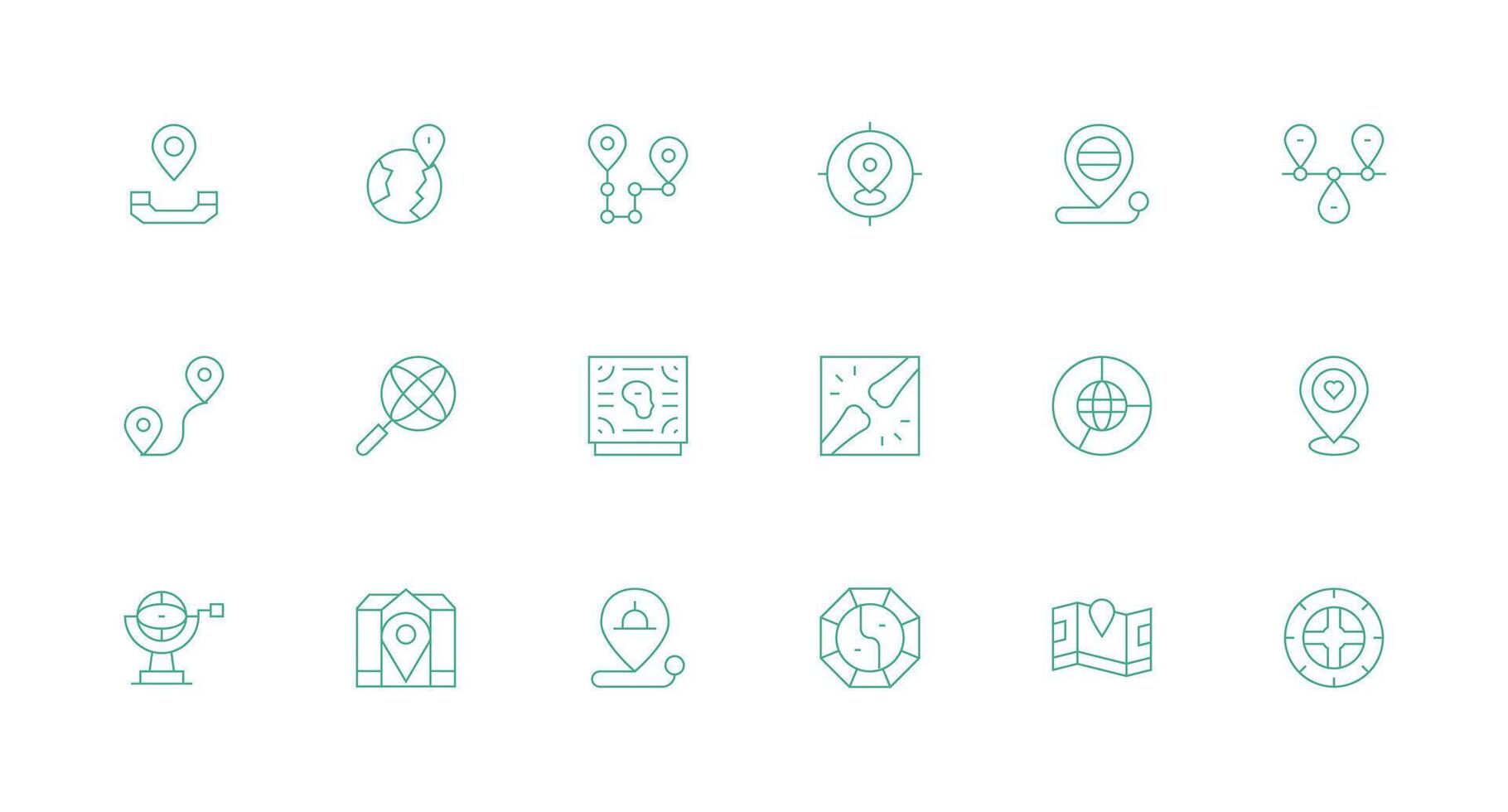 18 Map Icons in Minimal Line Aesthetic Interface Icon Collection for Daily Projects vector