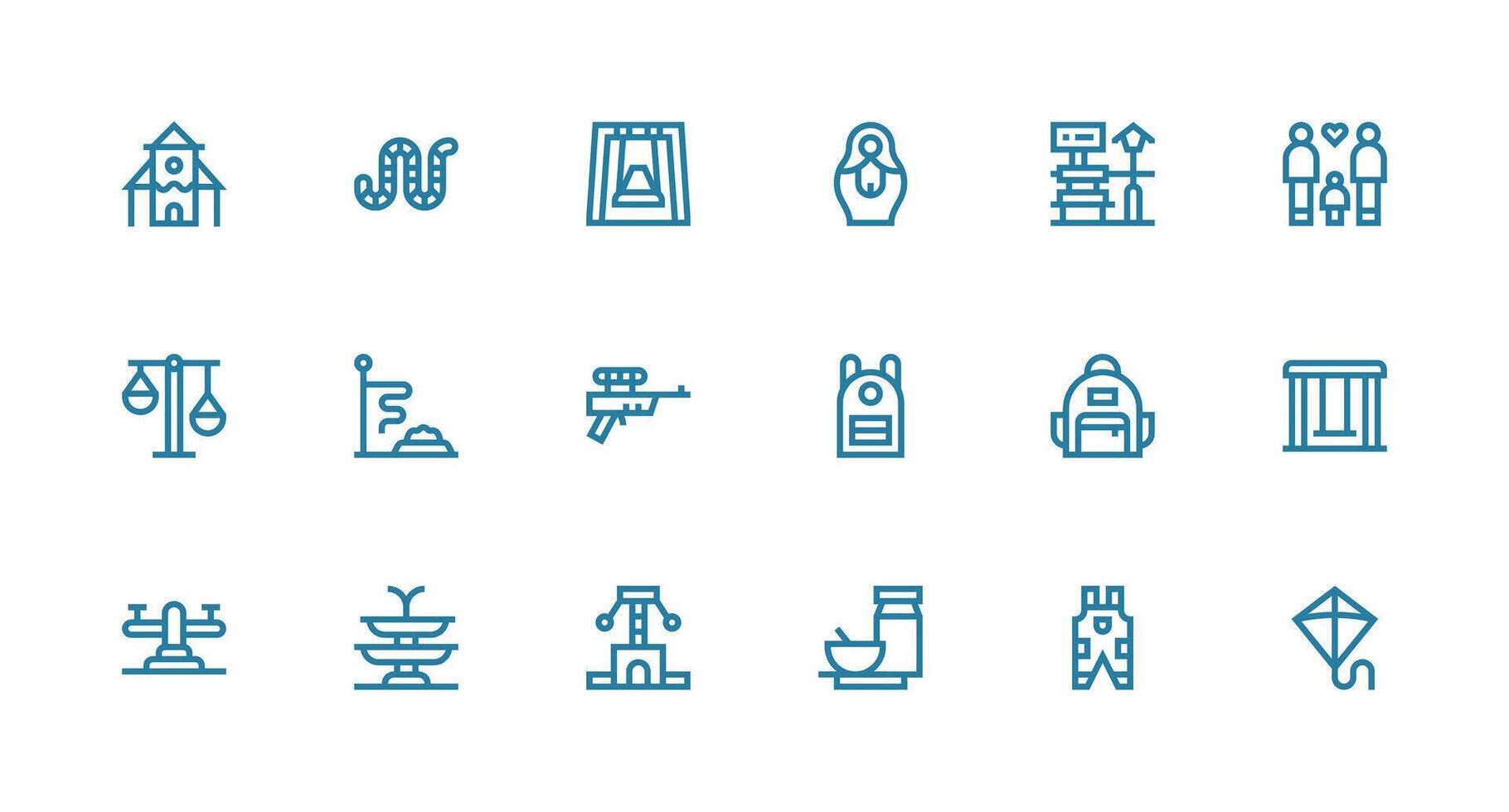 Strong Stroke Line Icons from Children Set with 18 Vectors Flexible Icon System for Web Interfaces Free Vector