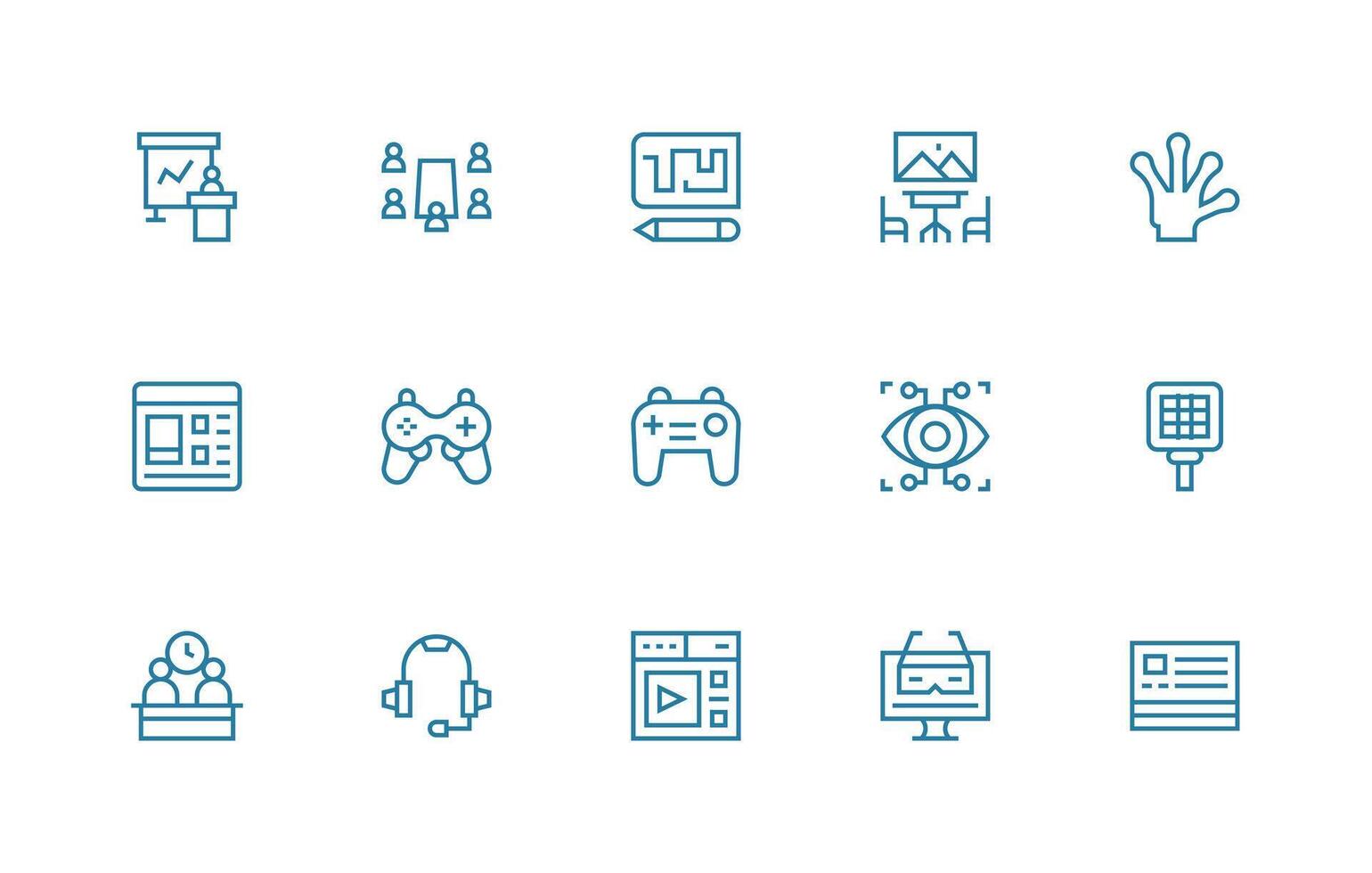 Regular Line Style Interactive Icons with 15 Vectors Editable Icon Collection Free Vector