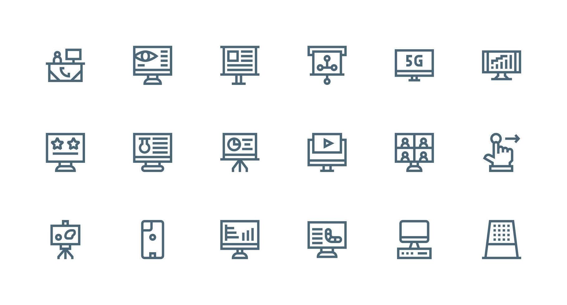 18 Icons for Screen in Strong Stroke Line Format Essential Icons for Rapid UI Building Free Vector