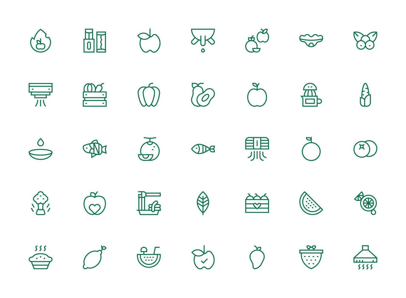 Fresh featuring 35 Icons in Regular Clean Line Design Clear and Concise Icon Set Collection vector