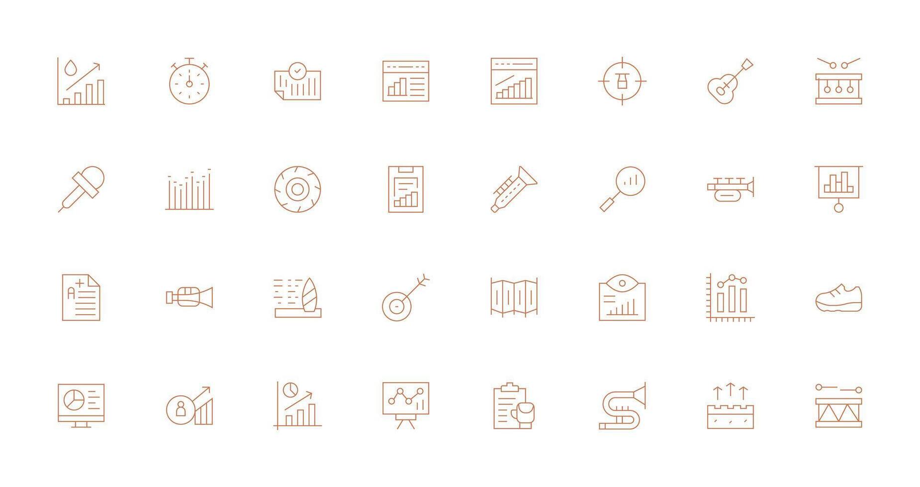 Performance Visual Pack containing 32 Thin Line Icons Balanced Icon Set for Functional Design Free Vector