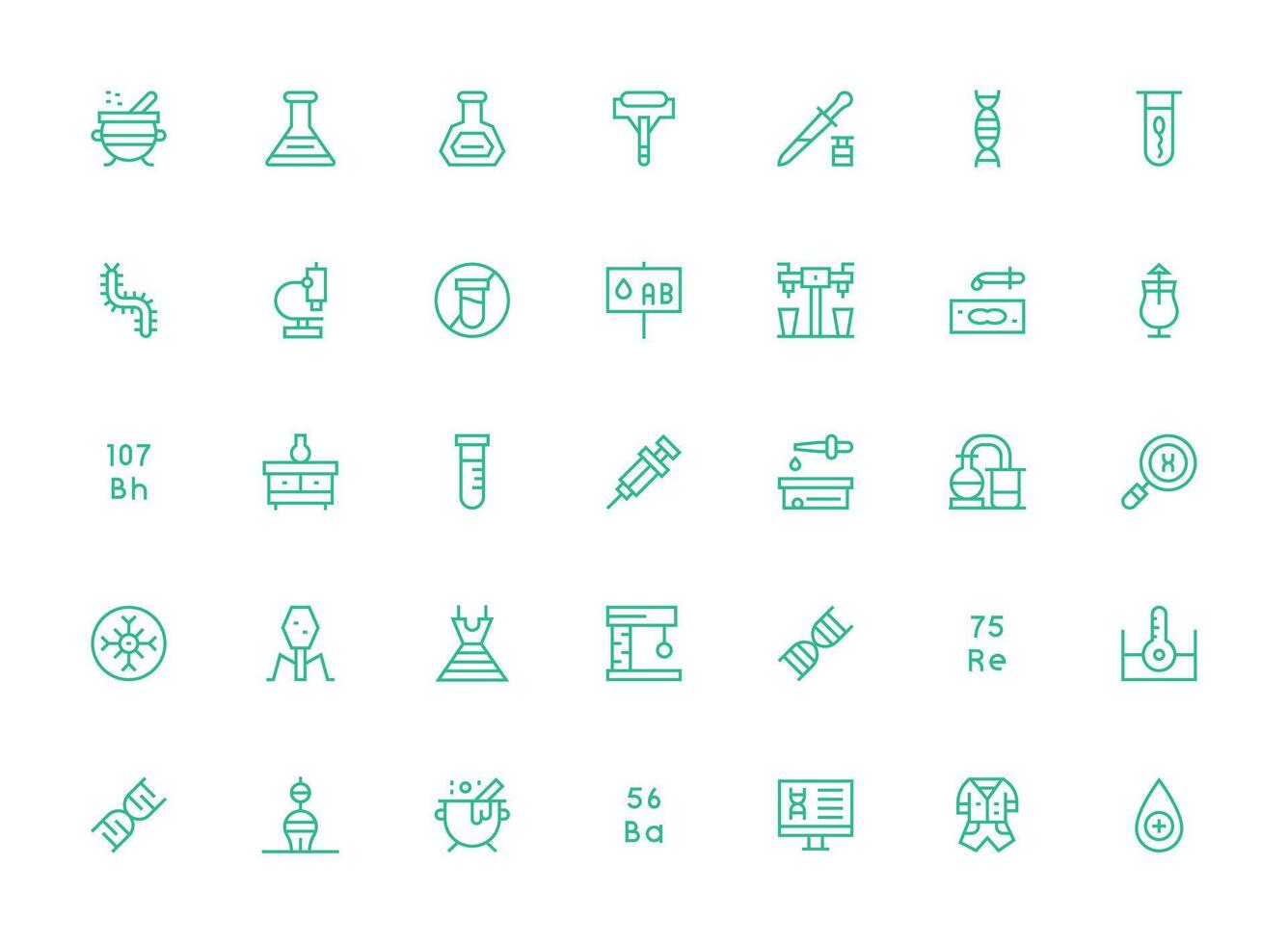 35 Regular Clean Line Style Icons from Laboratory Collection Complete Icon Bundle for Web Design Free Vector