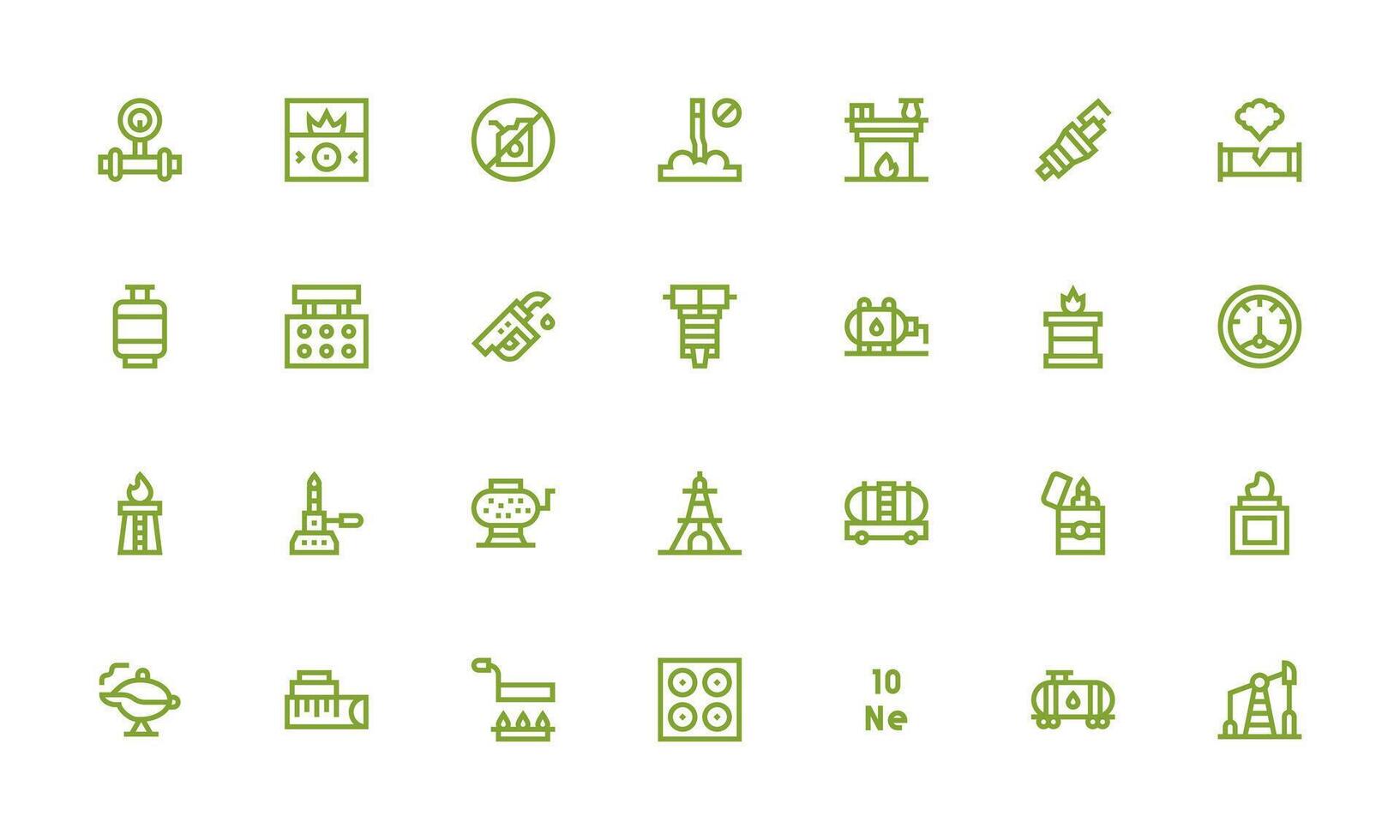 Gas Icon Set with 28 Bold Line Graphics Fully Editable Icon Set for Web Free Vector