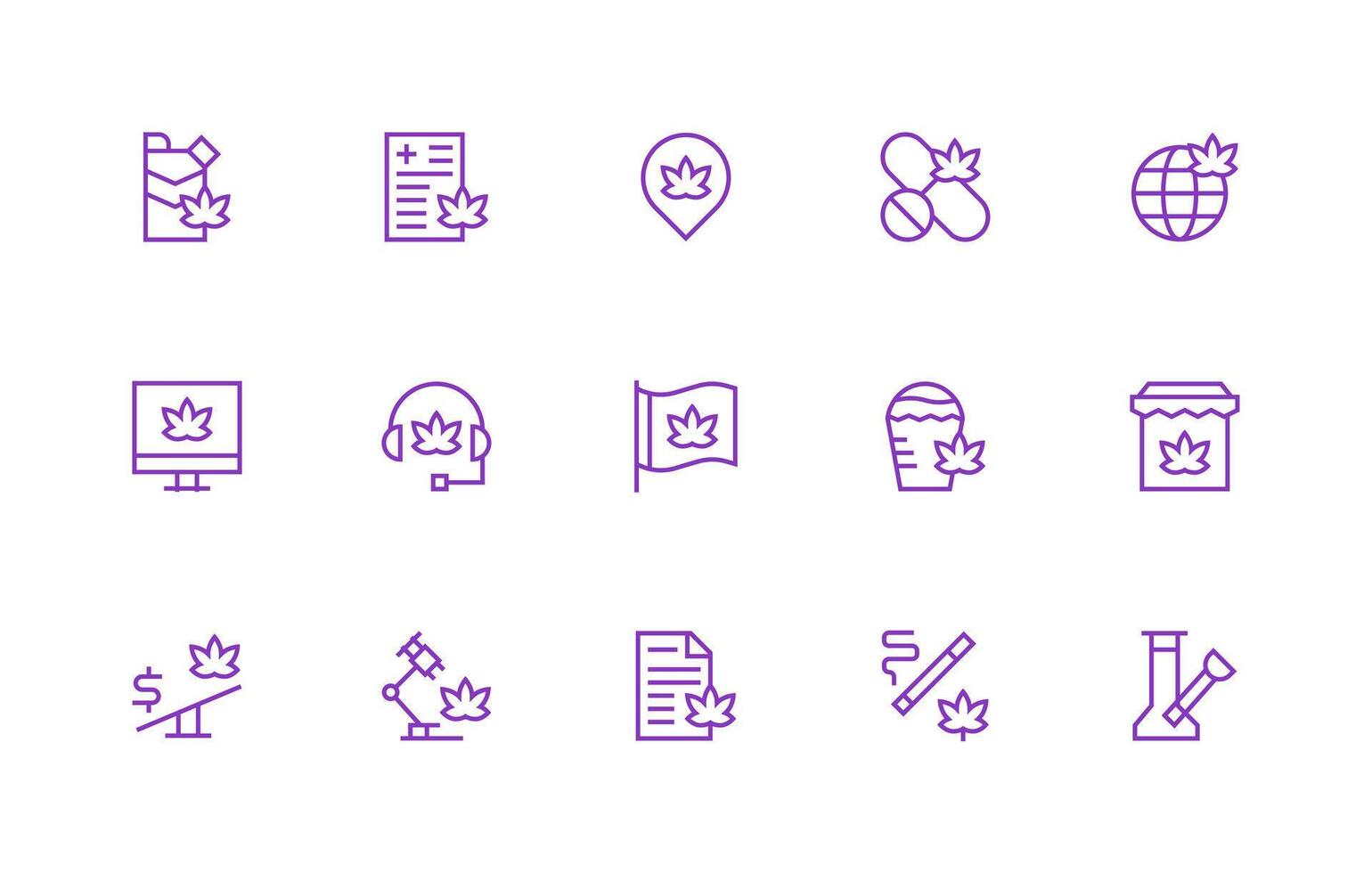 15 Icons for Marijuana in Regular Line Format Flat Icon Set vector