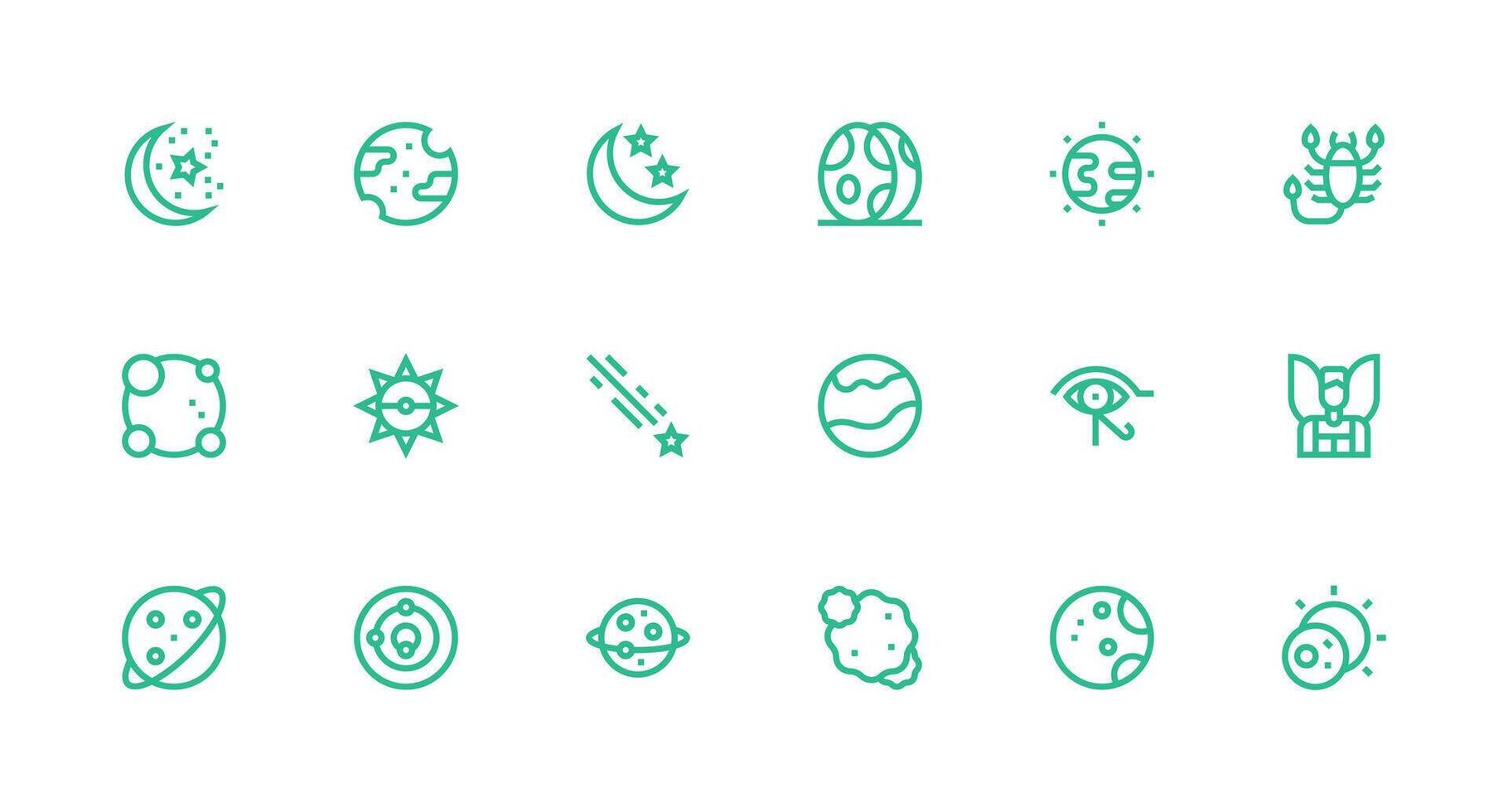 Celestial Design Icons featuring 18 in Strong Stroke Line Style Full Icon Library for UI Designers Free Vector