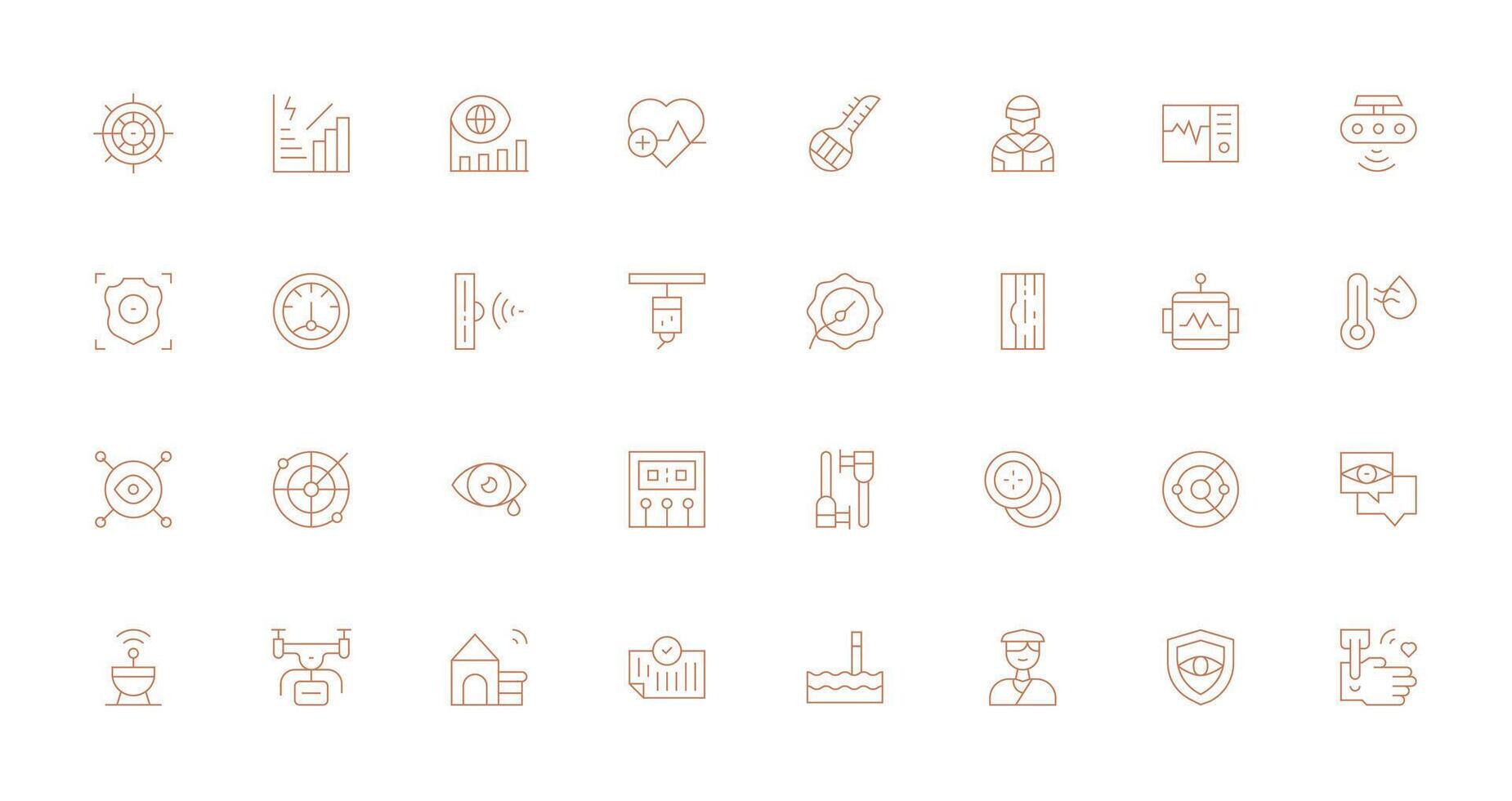 Monitoring featuring 32 Icons in Thin Line Design Icon Set for Projects Free Vector
