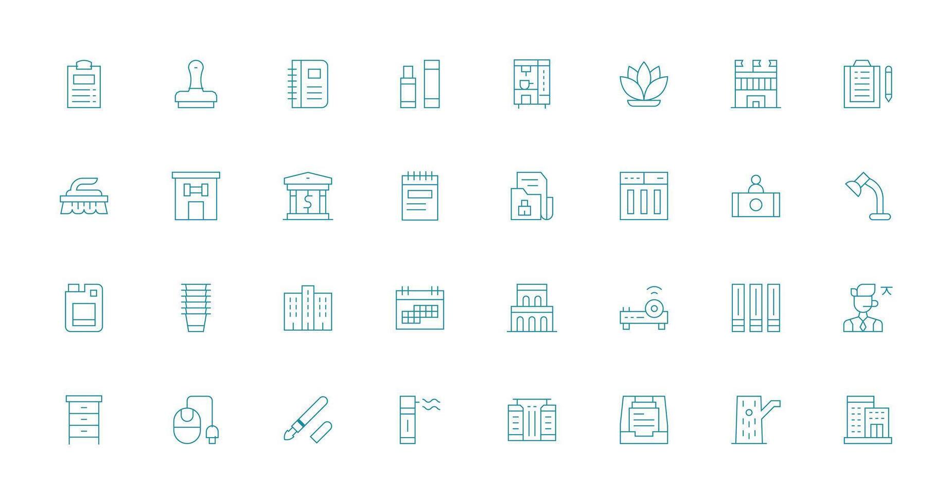 Office Icon Set with 32 Thin Line Graphics Neatly Designed Icons for Web Platforms vector