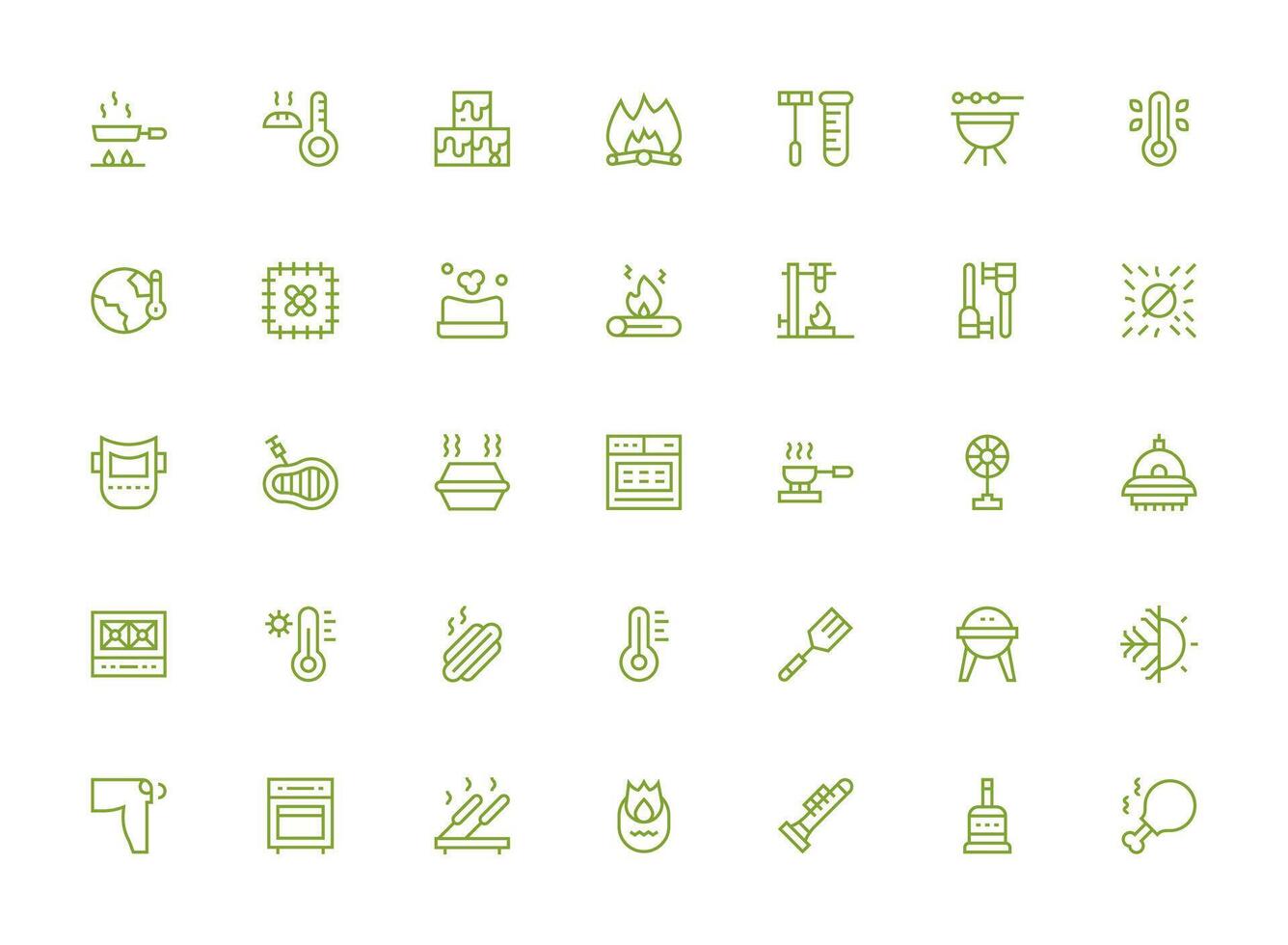 Heat Icon Set with 35 Regular Clean Line Graphics Scalable Icons for Cross-Platform Interfaces vector