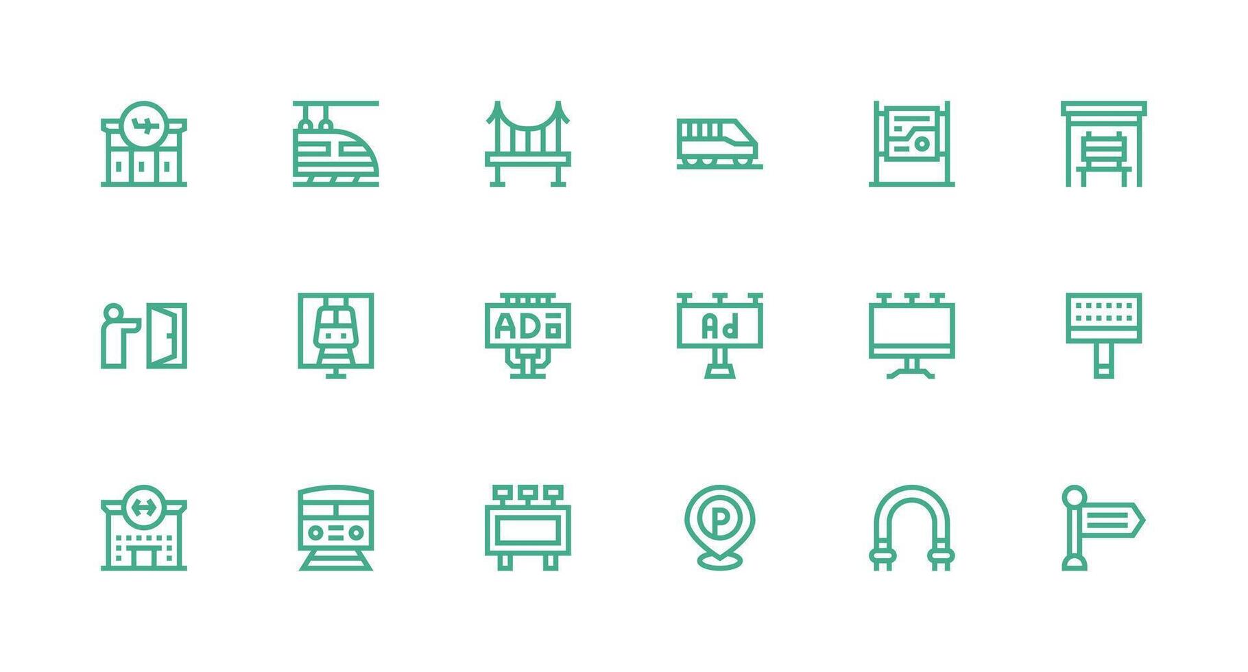 18 Icons for Transit in Strong Stroke Line Format Icon Set for Projects Free Vector