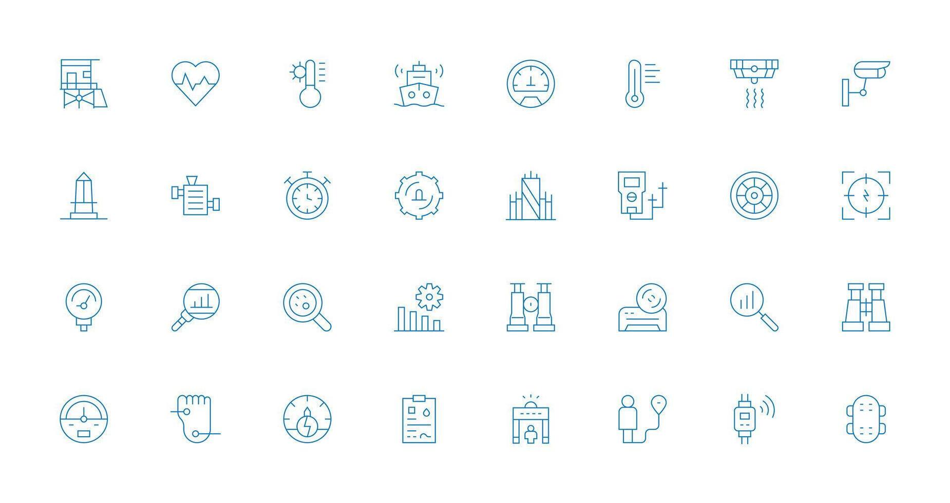 Monitoring Design Icons featuring 32 in Thin Line Style Web Icon Collection vector