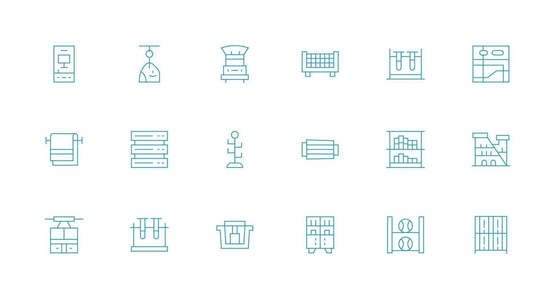 Rack Set with 18 Minimal Line Icons Basic Icon Series Free Vector