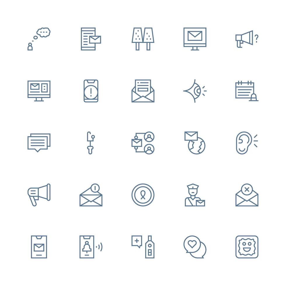 Message including 25 Medium Stroke Outline Illustrations Quick Access Icons for UI Development Free Vector