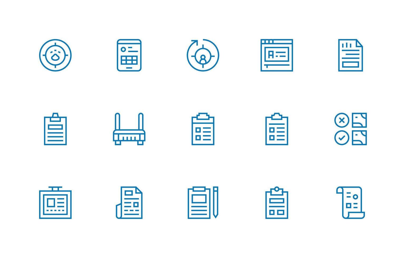 Survey Design Icons featuring 15 in Regular Line Style Icon Set for Projects Free Vector