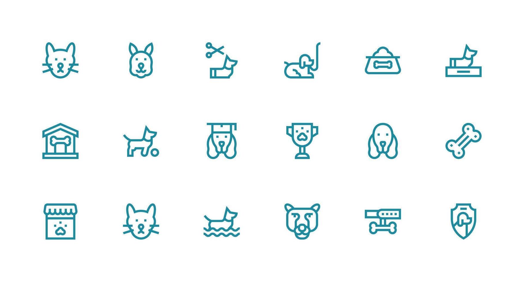 18 Strong Stroke Line Icons for Canine Graphics Complete Icon Bundle for Web Design Free Vector