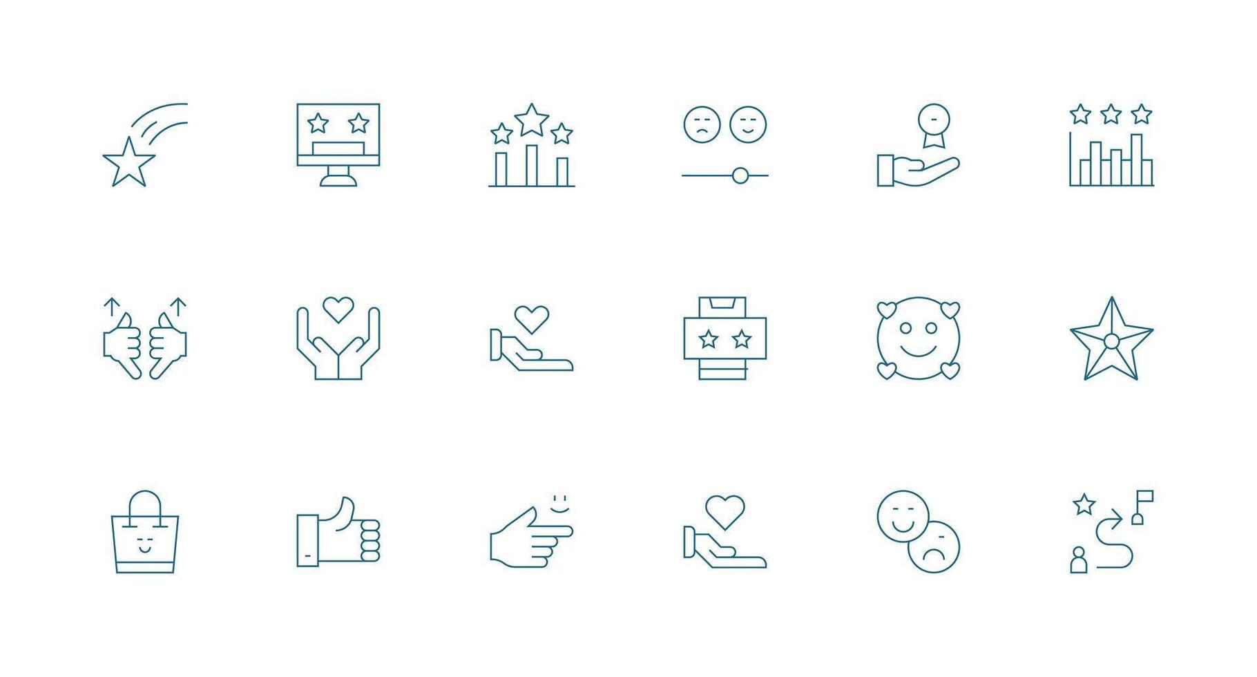 Customer Satisfaction Icon Set with 18 Minimal Line Graphics Fully Editable Icon Set for Web vector