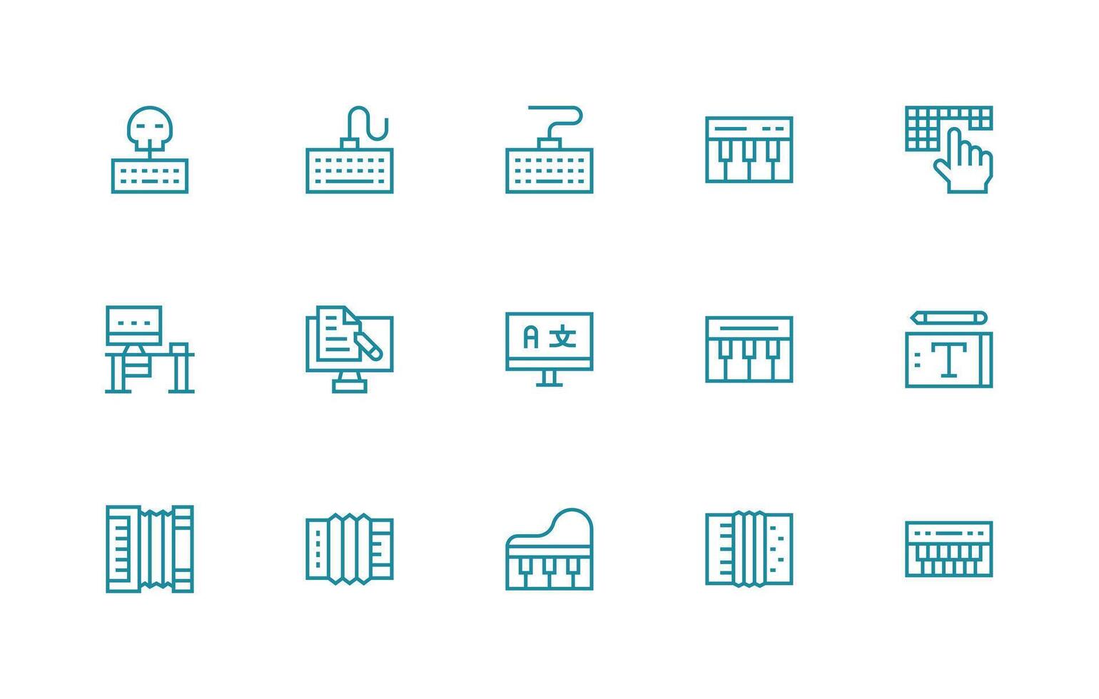 Keyboard including 15 Regular Line Illustrations Core Icon Collection for Daily Tasks vector