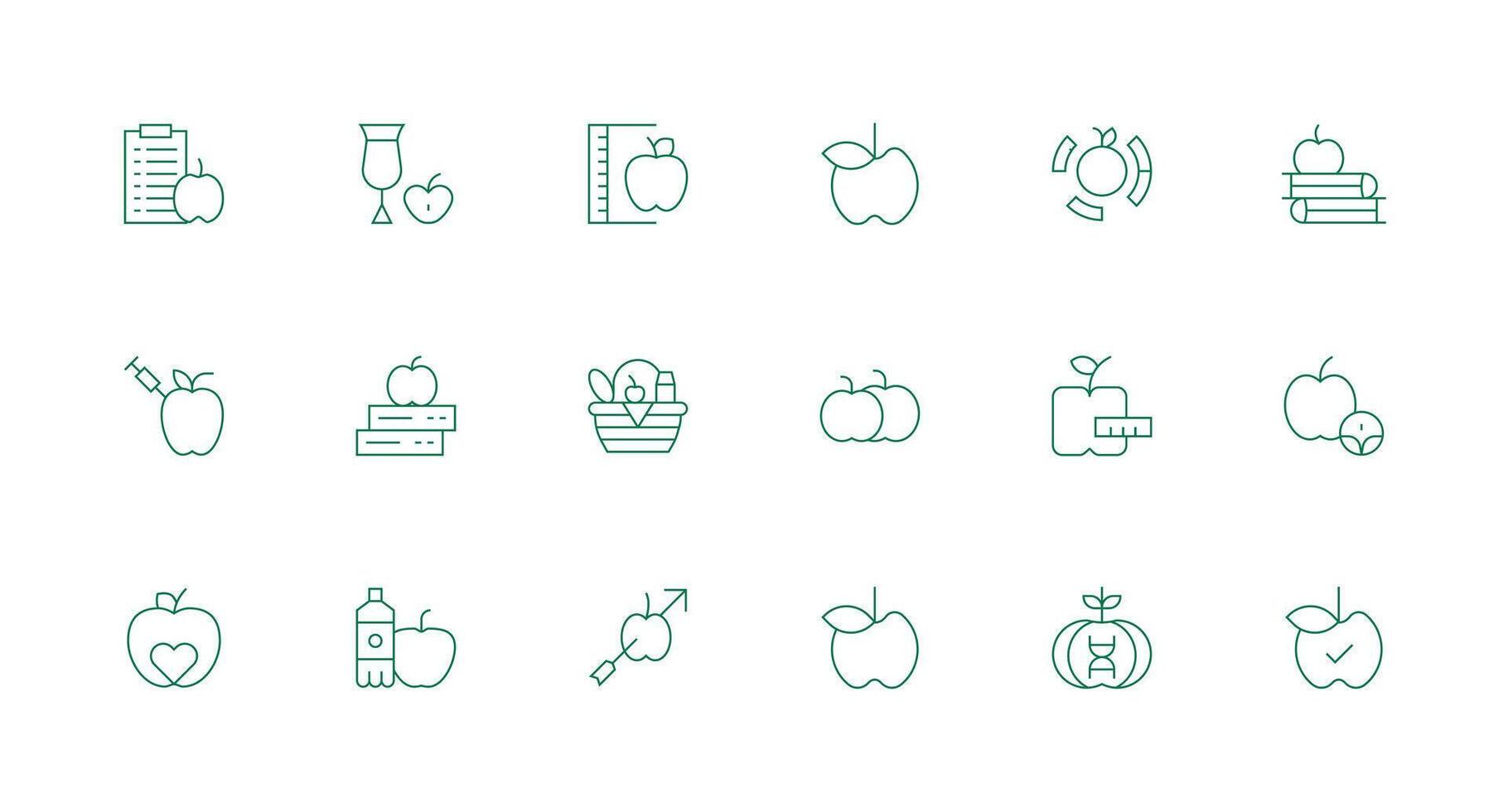 Apple Icon Set with 18 Minimal Line Graphics Scalable Icon Pack Free Vector