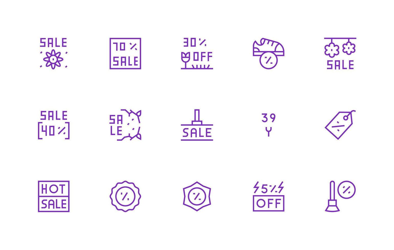 Clearance Sale Design Icons featuring 15 in Regular Line Style Essential Icons for Rapid UI Building vector