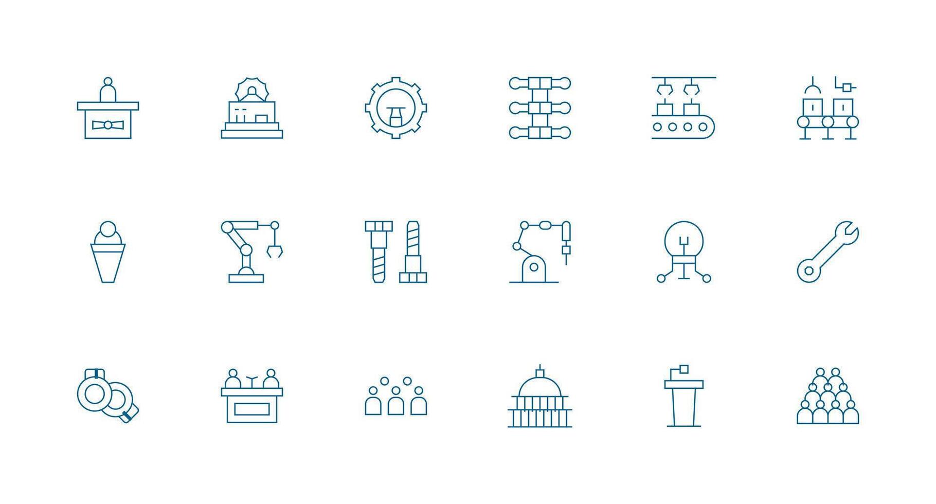 Assembly featuring 18 Icons in Minimal Line Design Scalable Icon Pack vector