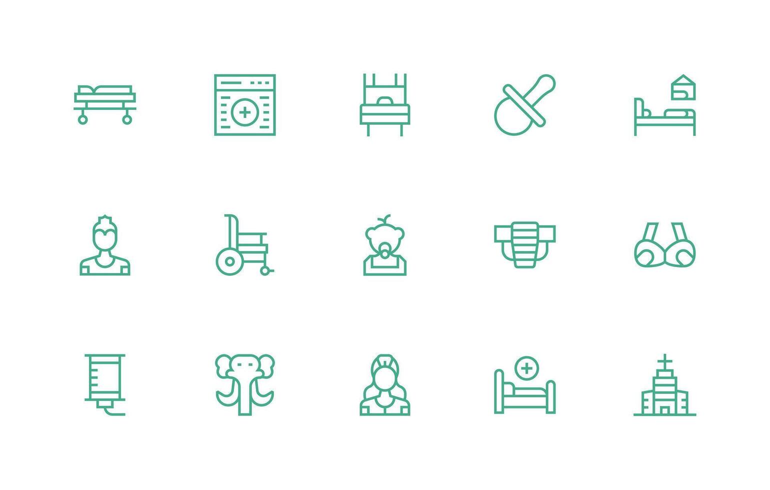 Nursing Icon Set with 15 Regular Line Graphics Icon Set for Web Free Vector