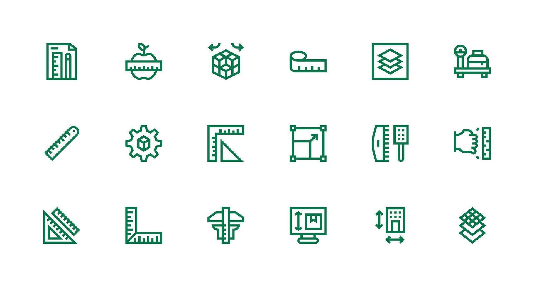Dimension Set with 18 Strong Stroke Line Icons Simplified Icon Pack for Visual Tools Free Vector