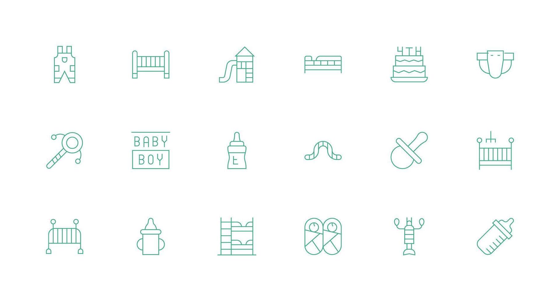 Toddler Design Icons featuring 18 in Minimal Line Style Modern Line and Glyph Icon Series Free Vector