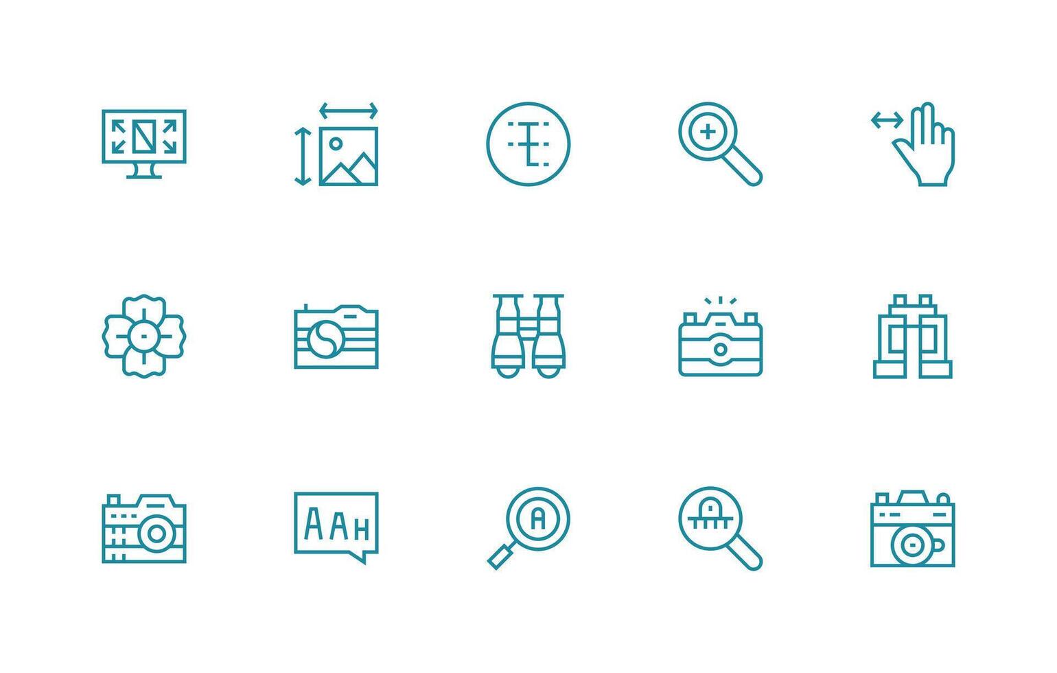 Zoom Icon Set with 15 Regular Line Graphics Functional Icon Series Free Vector
