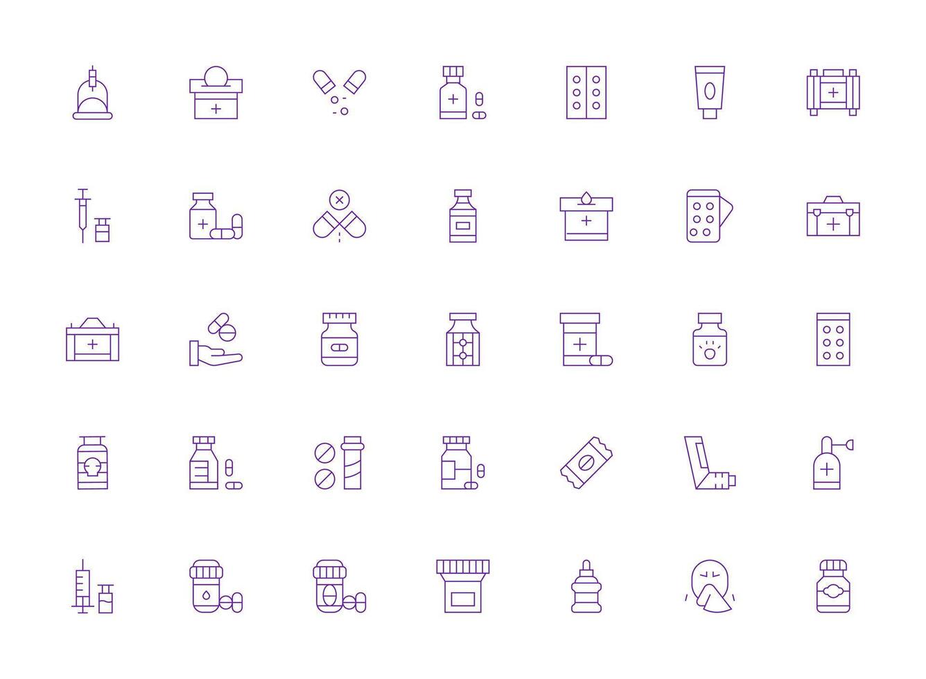Medication Design Icons featuring 35 in Light Line Style Sharp Icons for Presentations vector