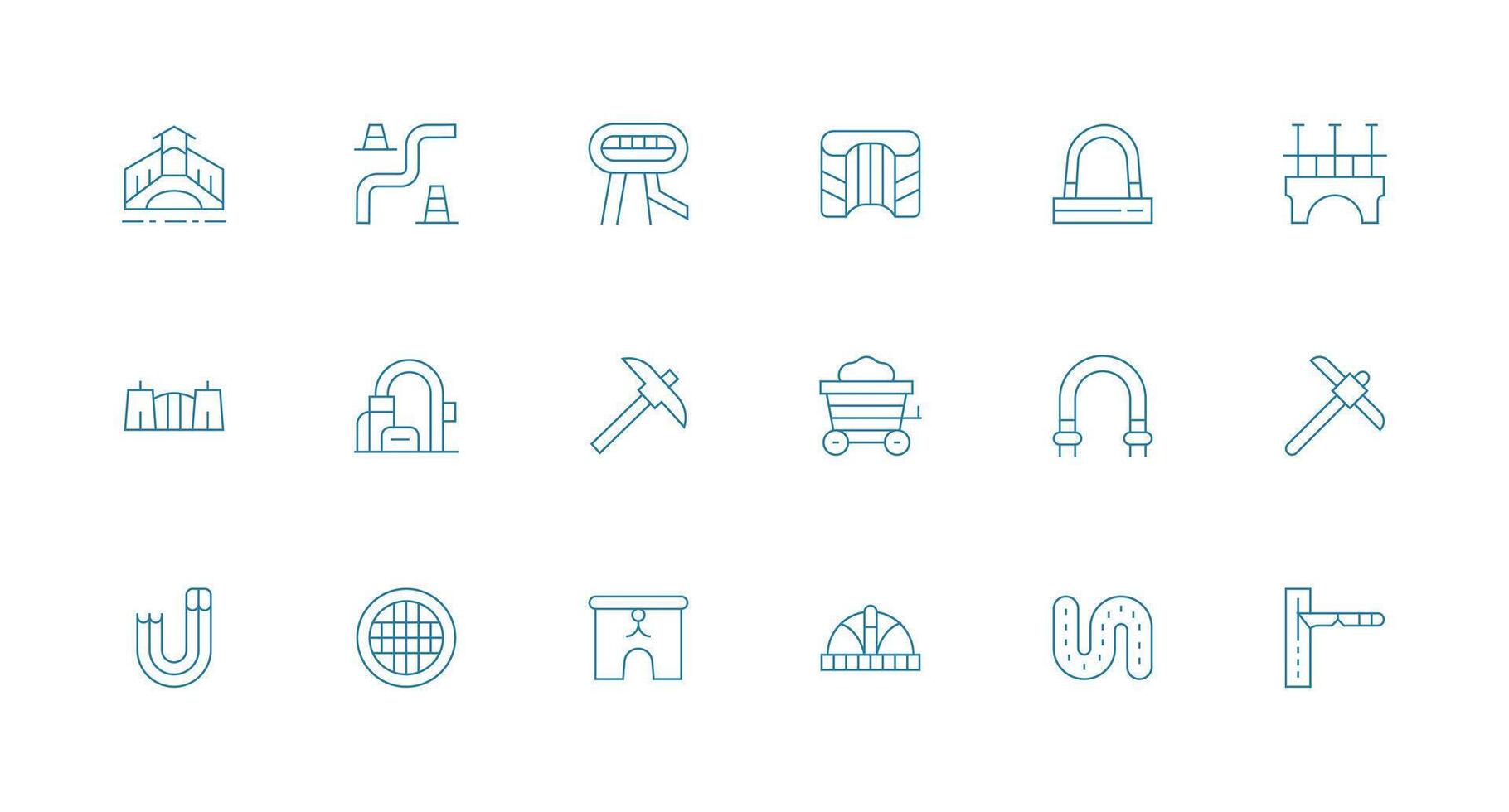 18 Icons for Tunnel in Minimal Line Format Compact Icon Set Free Vector