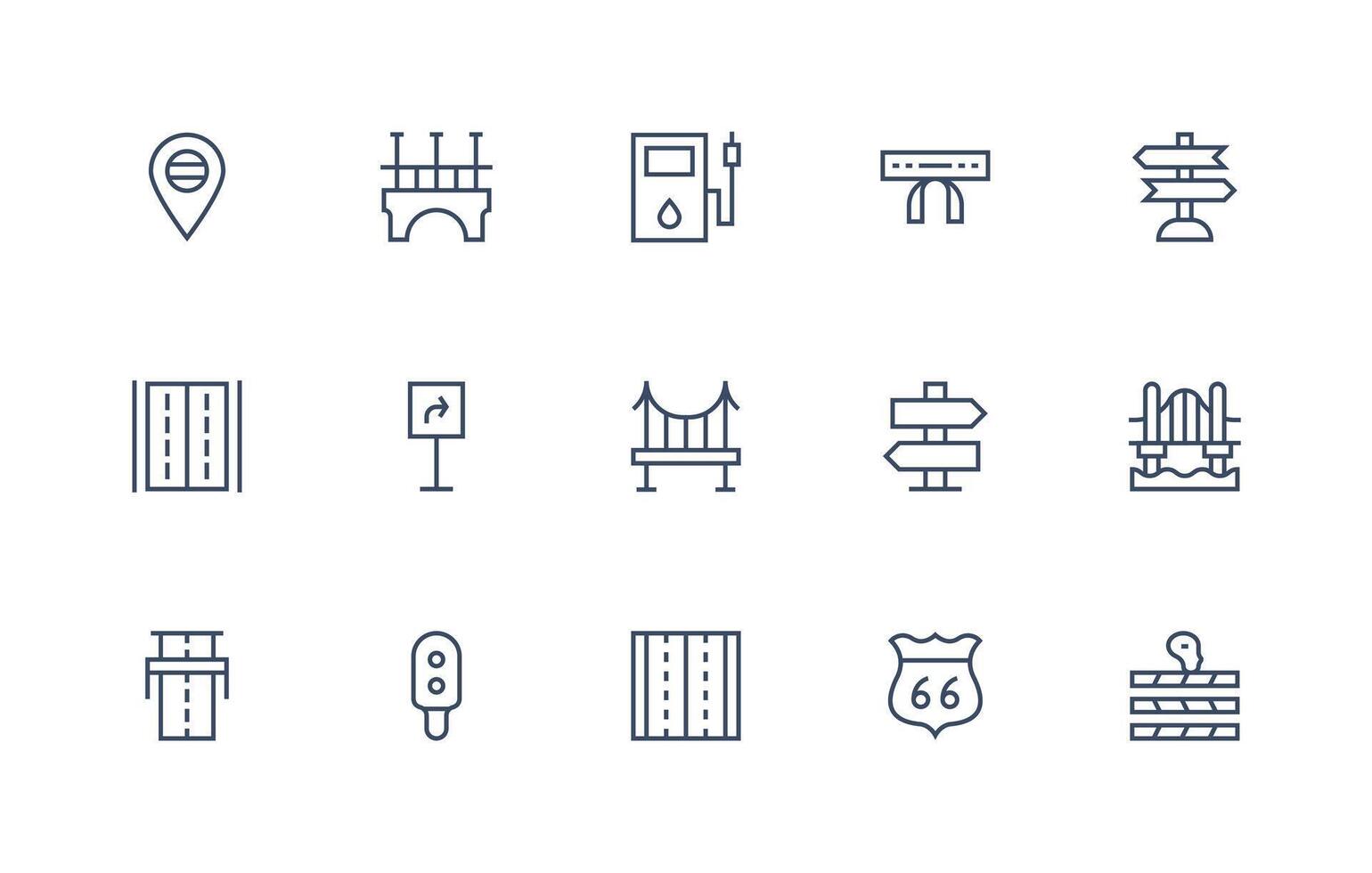 15 Regular Line Style Icons from Highway Collection Icon Set for Apps vector