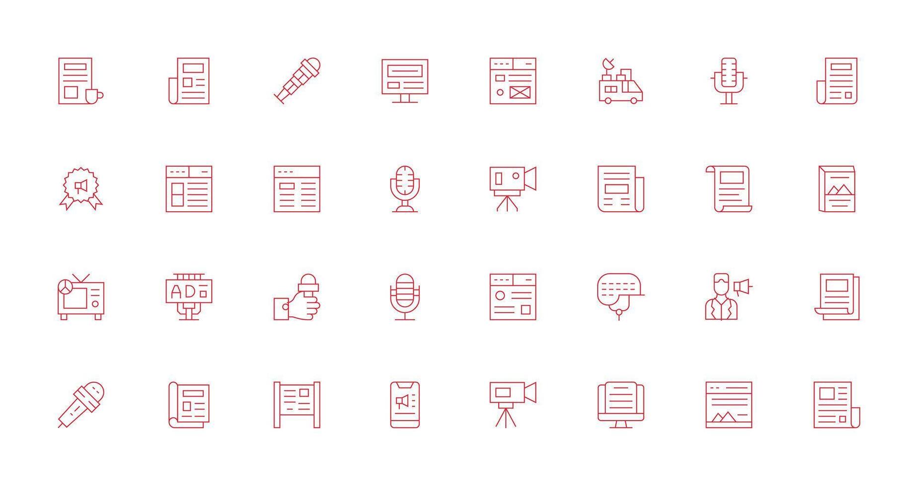 32 Thin Line Icons for News Graphics Complete Icon Bundle for Web Design Free Vector
