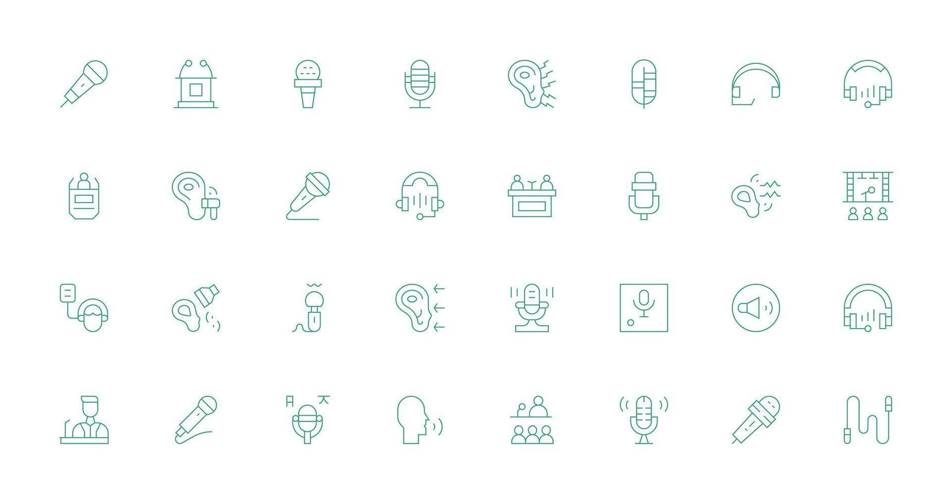 Thin Line Style Microphone Icons with 32 Vectors Web Icon Collection
