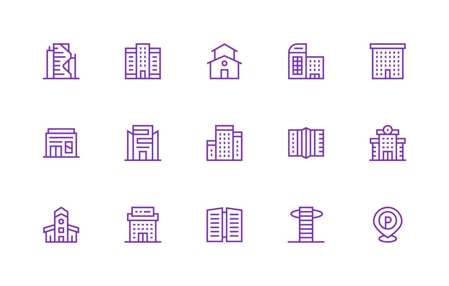Multi Icon Set with 15 Regular Line Graphics Style Icon Set vector