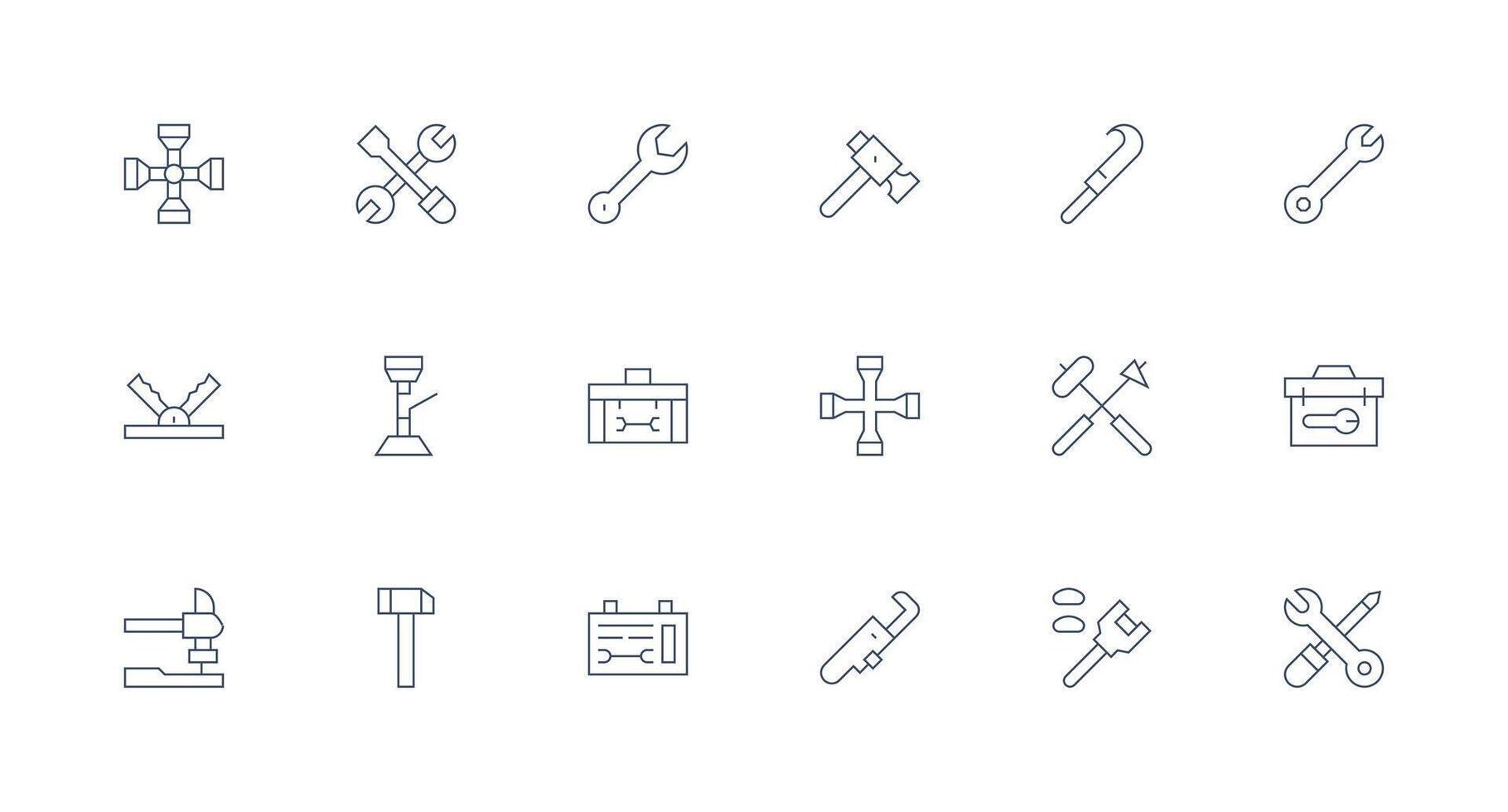 Wrench Icon Set with 18 Minimal Line Graphics Complete Icon Bundle for Web Design Free Vector