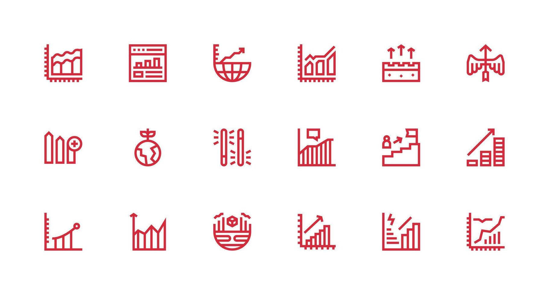 Rising Set with 18 Strong Stroke Line Icons Sharp Icons for Presentations vector